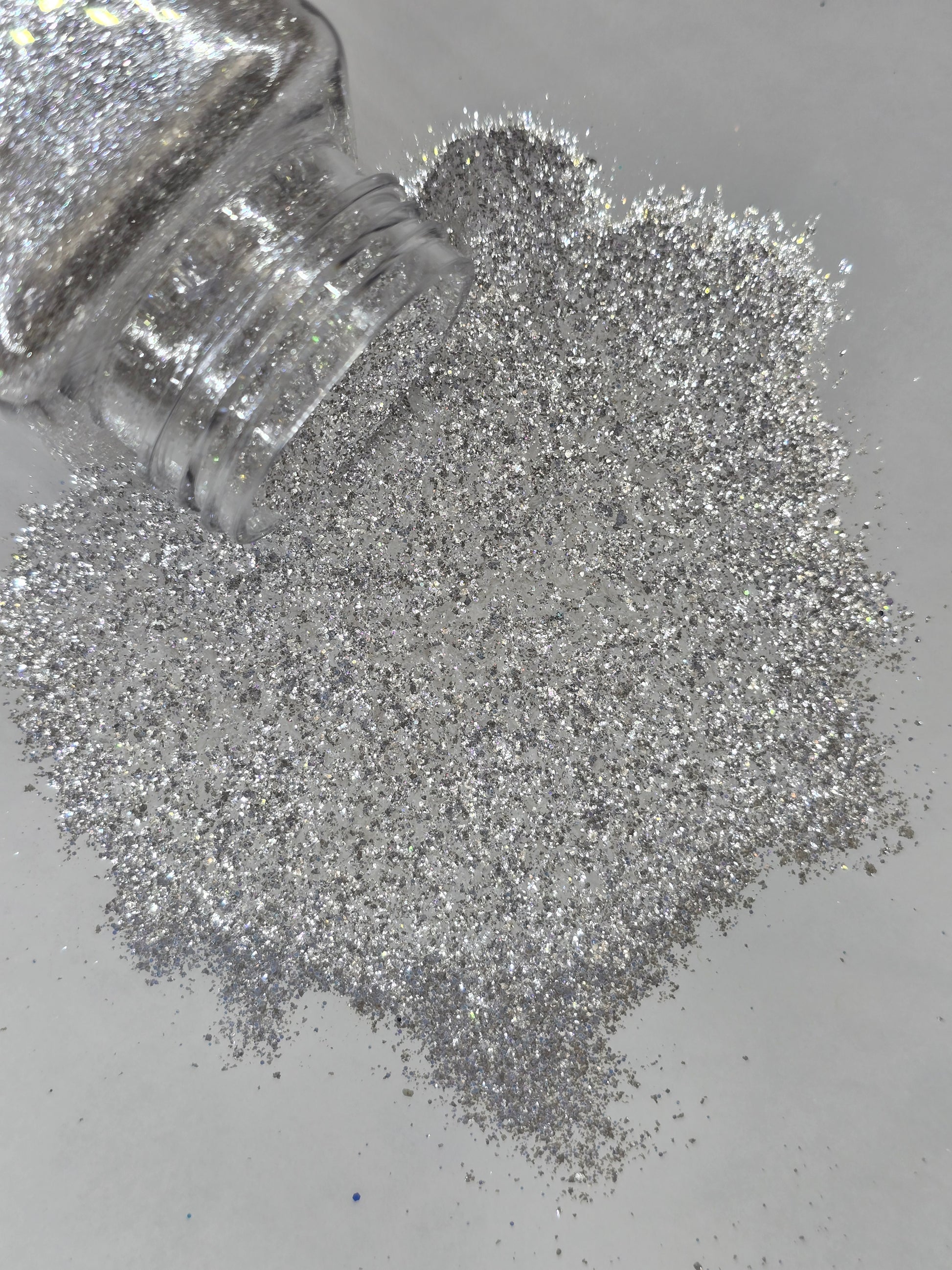 Crisp white sparkle with a frosty glow, like a snowstorm you can dance in. This glitter has a white-purple UV reaction.