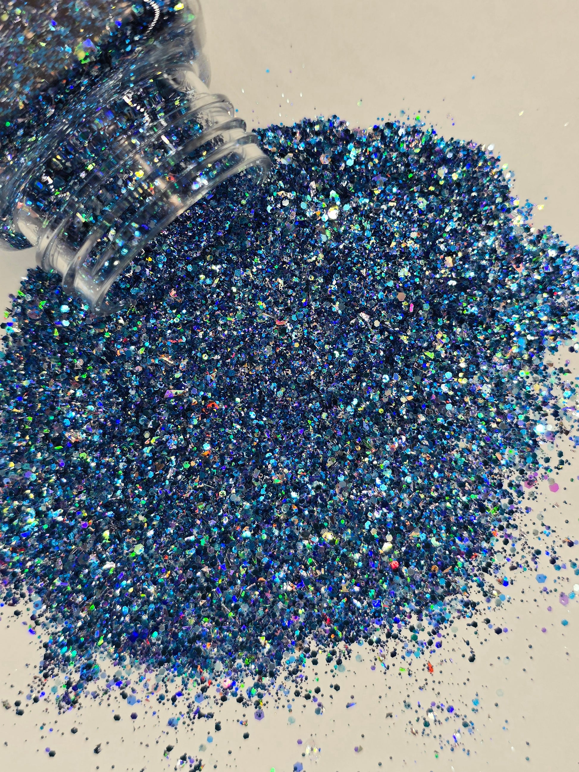 Deep space blues with cosmic sparkles, like holding a galaxy in your hands.