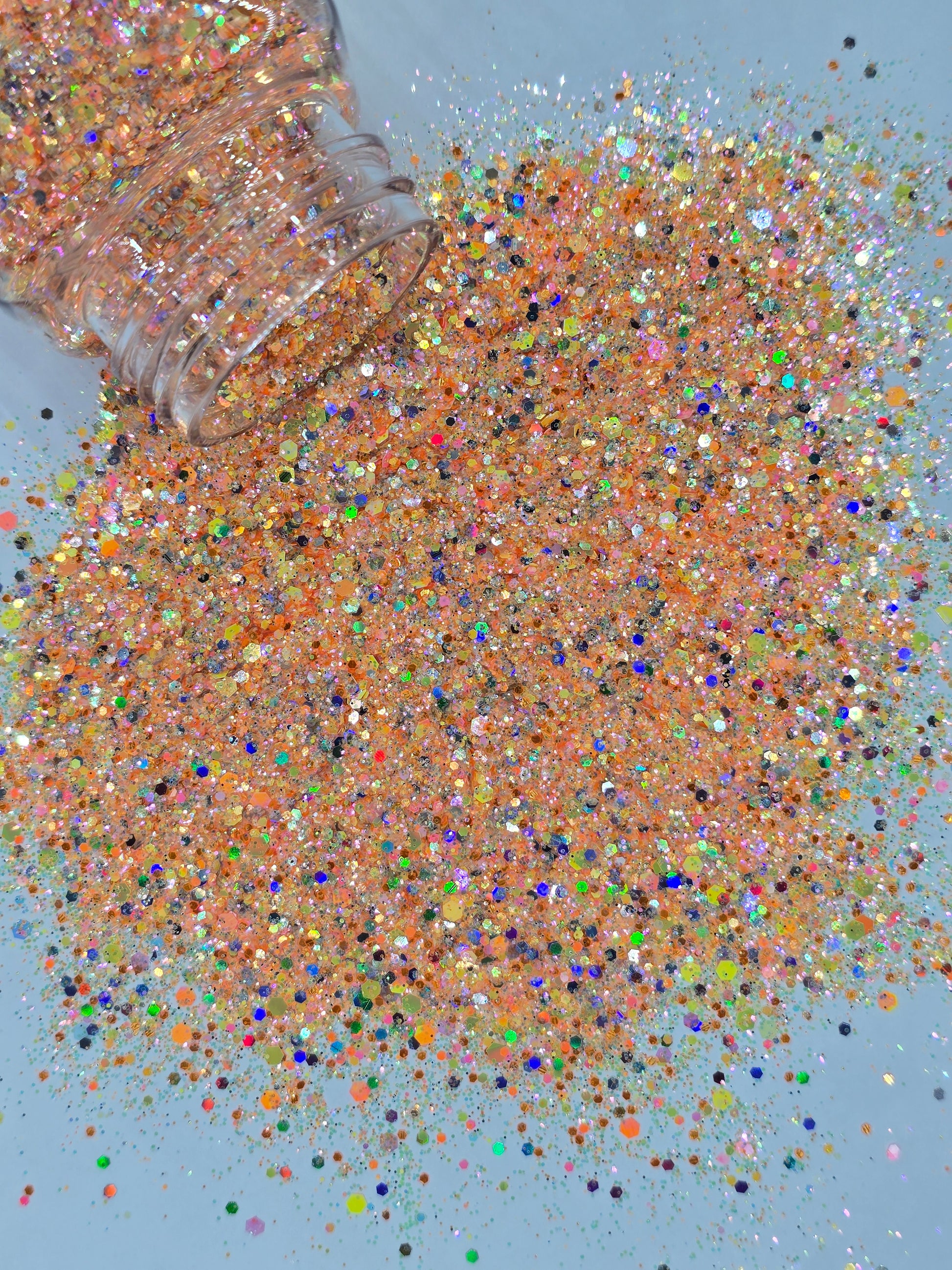 A juicy swirl of golden orange sparkle with a fruity pop of rainbow shine, as sweet and looks just as refreshing as your favorite summer treat.