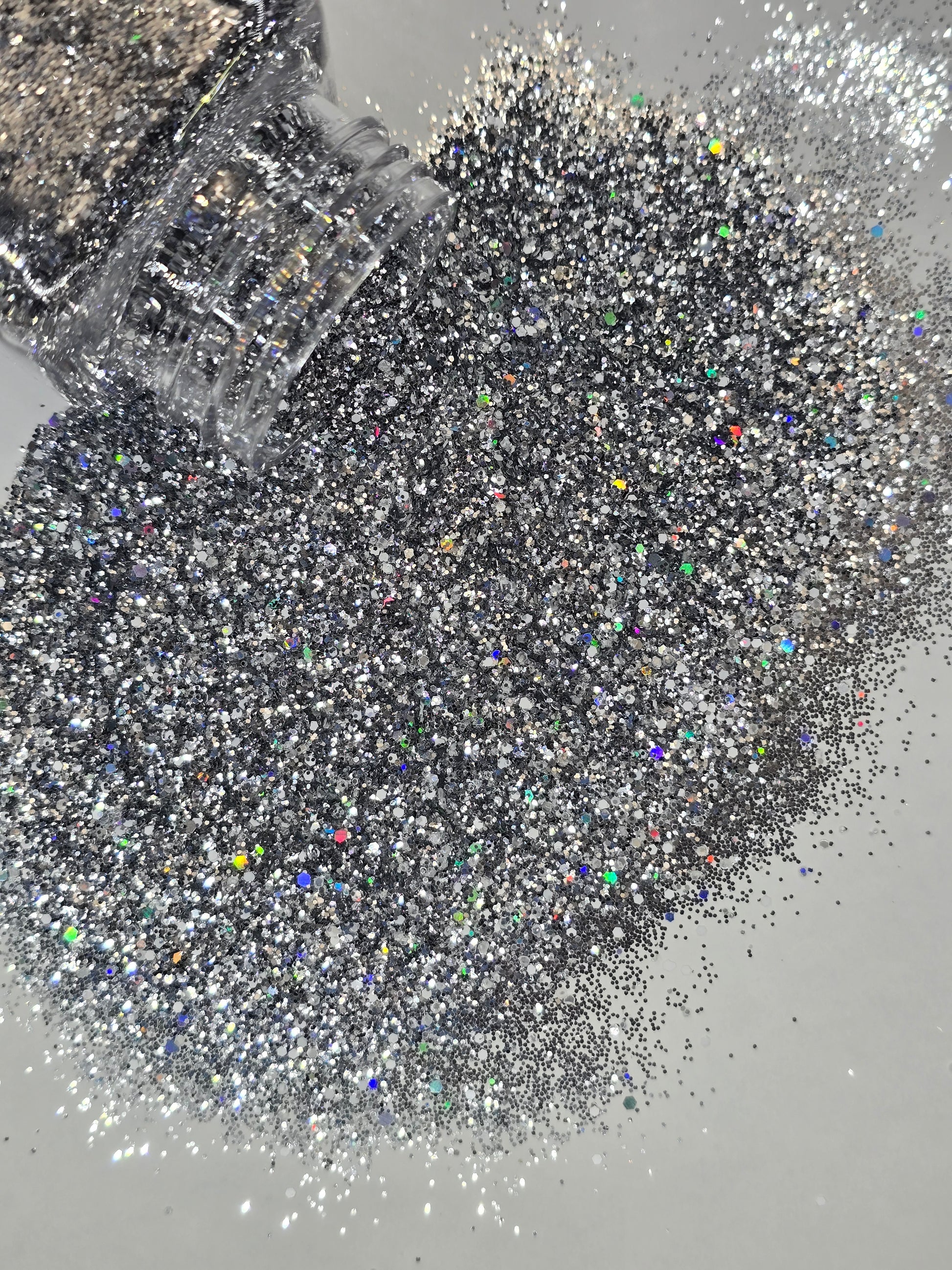 A bold silver sparkle that twinkles like tiny stars scattered across the night sky.